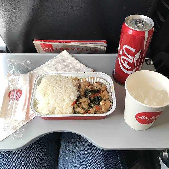 顺利登机,正值中午 干脆体验下亚航的机餐,想吃的没有提供,点了190฿的泰式鸡饭配可口可乐,酸酸辣辣很下饭,我吃了个精光,能不吃辣就不吃辣的呆霖点了中式荷叶饭竟然也还可以