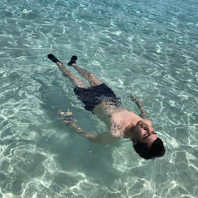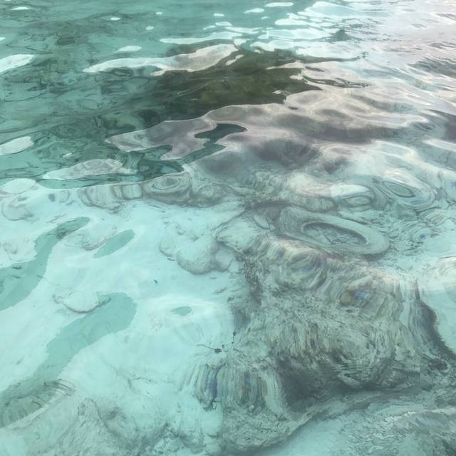 一个教练拉一个游泳圈上面可扒三四个人,第一次浮潜有点紧张,但适应一会儿就好了,手扒着游泳圈放松全身浮起来,同个游泳圈的男生和大爷都过于紧张没怎么看,而我 完全沉醉于透明的海和美轮美奂的海底世界了