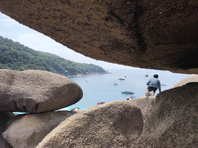 担心错过集合时间我俩停留了片刻就下山了,真是上山不容易下山更难,想去的一定要喷驱蚊水,穿潜水袜,岛上除沙滩外的路跟指压板还是有的一拼的