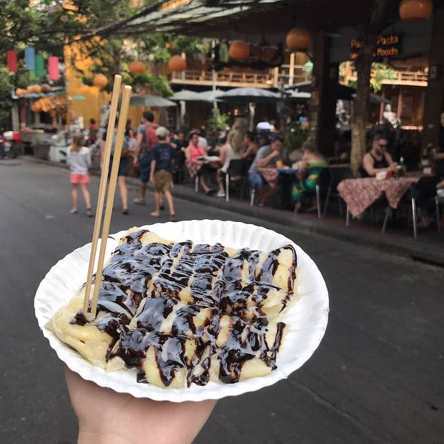 呆霖心心念念的香蕉煎饼,路边随便找了一家,成为本行踩的第一个雷,小哥做的很认真,酱给的很足,可惜并不好吃,也不难吃,就是香蕉是酸的,偏油 容易腻,一定是我俩点单的姿势不对