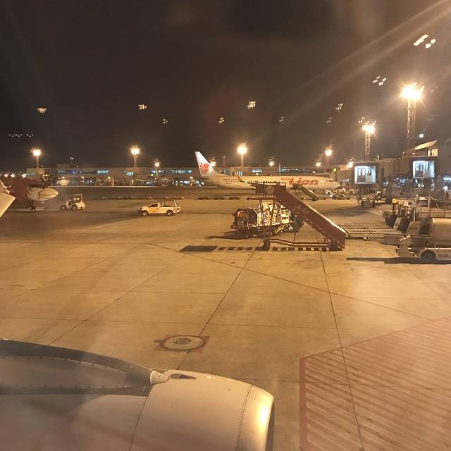 到达曼谷已是凌晨,随着人流就能找到过关的地方,队伍不长,左边落地签的位置小排起了长龙,排一小时三小时的惨况都有耳闻,所以大家下飞机后动作尽量快一些,我俩赶在了还在集合的旅行团之前,迅速过关