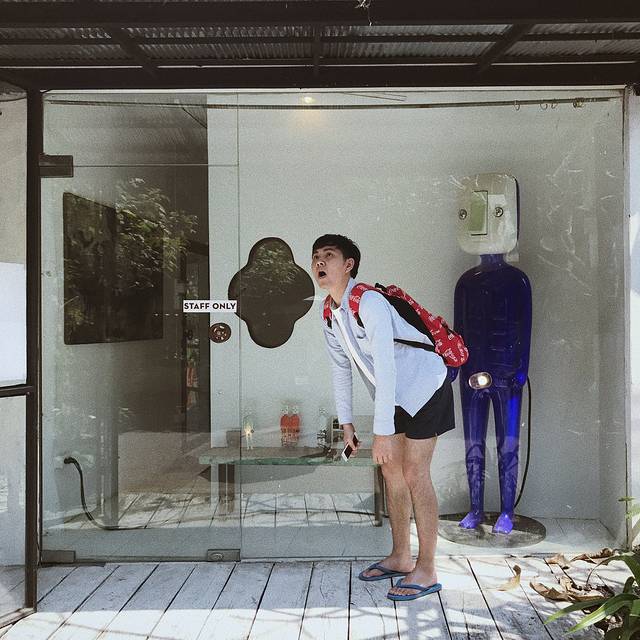 看表演时和呆霖偷偷讨论着哪个人妖好看,审美相当直男,结束后赞助100฿让他挑个最喜欢的合照却不去,也是可爱
