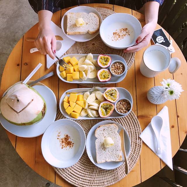 泰国必吃之一的芒果糯米饭,Dang做的香甜不腻,确实不错,椰汁感觉都差不多好喝,呆霖夸赞椰肉比国内吃到的嫩