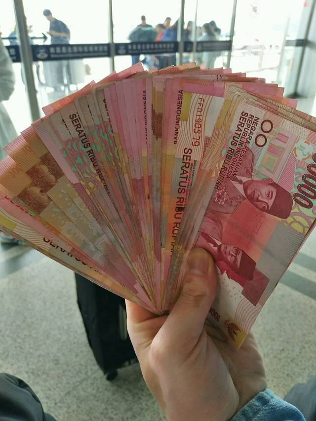 这是提前去中国银行兑换好的印尼盾,大概1:2100左右。如果去当地换会被宰,机场也有兑换的,但都不划算!我们一个人兑换了1600人民币,如果打算去金巴兰吃海鲜,来个酒店SPA那就多换些!