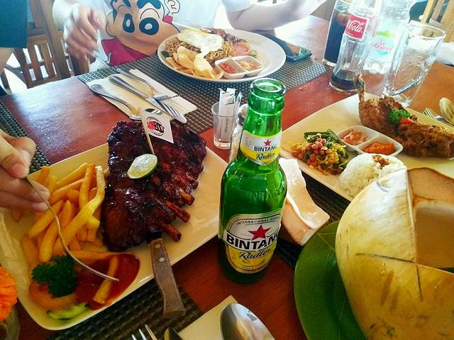 朋友提前租好了车,第二天早上我们在酒店吃好早餐就出发了(我们定的酒店都含早餐)!真的要吐槽一下巴厘岛的交通,路非常窄,车子又多。像我们这种在国内车技一般的,去巴厘岛估计就得翻沟里了……