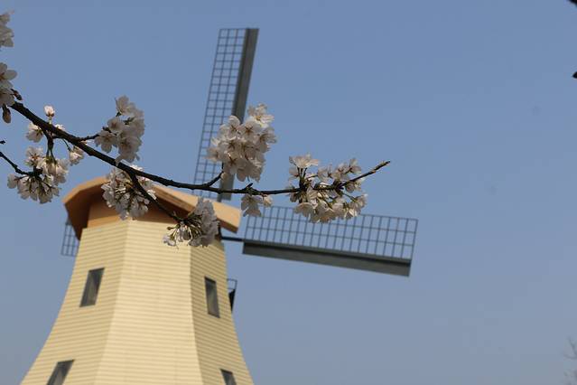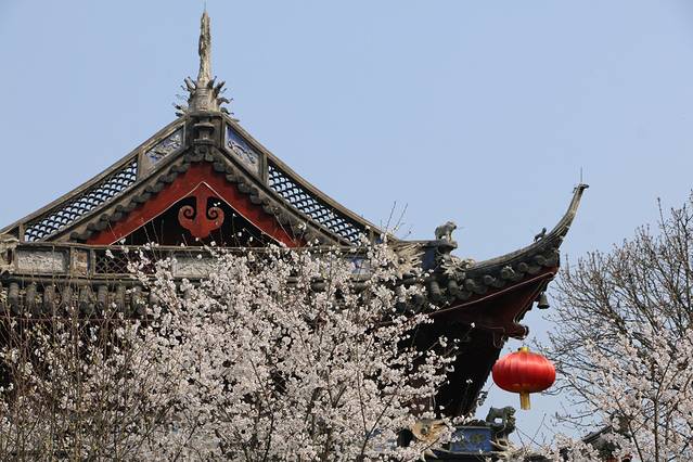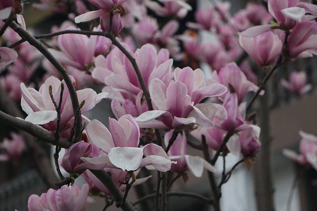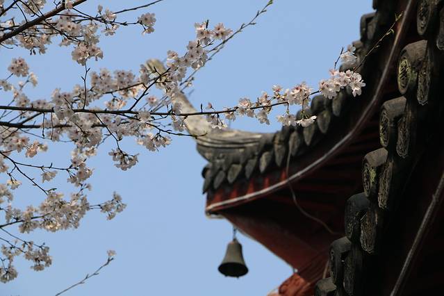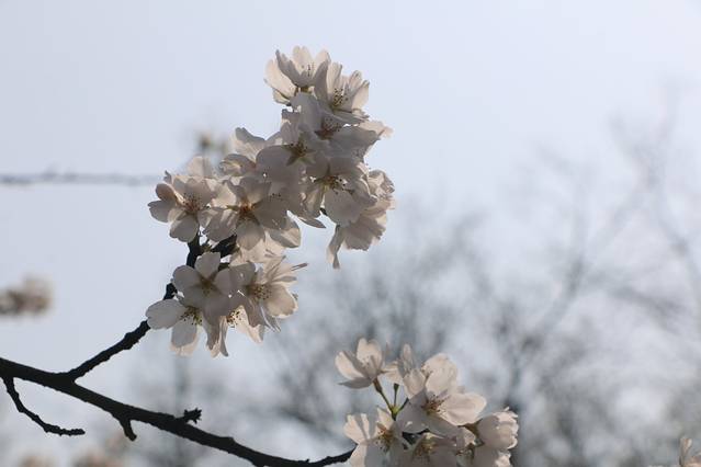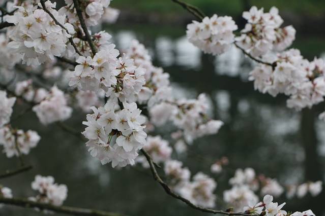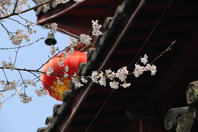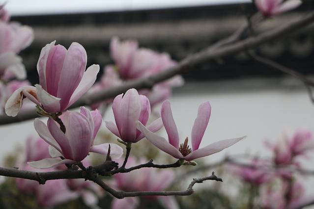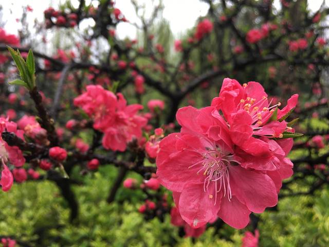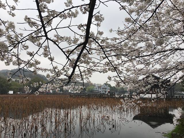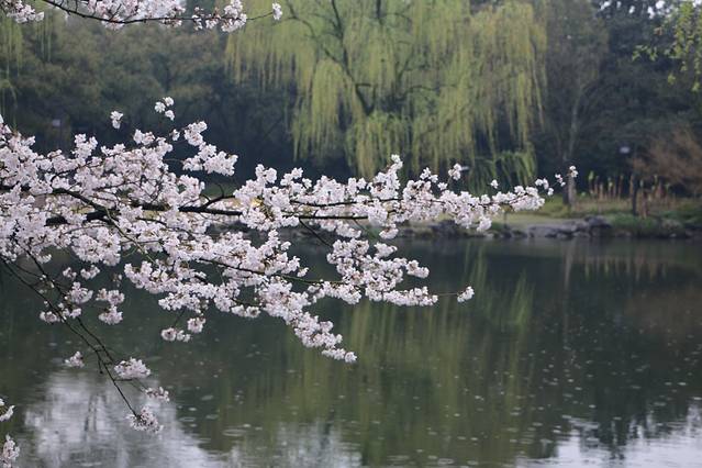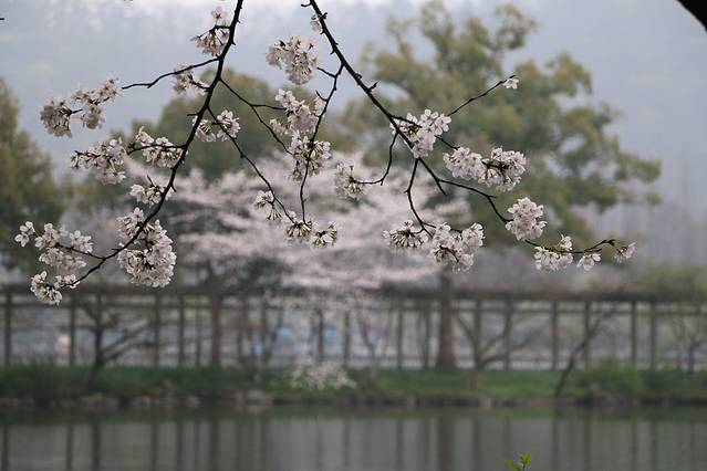 花港观鱼的烟雨中 樱花默默无言的等待阳光。
