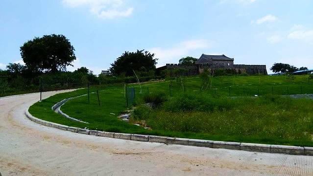 然后是第二个景点了,在花千谷大概呆了一个半小时,各种拍照,宁可错过不可放过啊哈哈,然后就顺着花千谷的路标指示一路往上走,就到大鹏古城的北门了,大鹏古城的北门挺壮观的,由于太阳有点大了,虽然擦了防晒霜,不过热的直流汗,所以在大太阳下拍了张北门的照片就赶紧进城了,进到城里已经快11点了,时间过得还真快...进到古城首先是爬上了北门的城楼,第一次爬上古代城楼,好兴奋,在北门的城楼可以看到很远的地方,特意看了下城楼的砖和水泥,不是现代的砖和水泥,水泥好像是黄土和海沙混合的,而且居然很坚固,难以想象。下了城楼,沿着指示牌就走下去了,开始我们到处乱走的古城之旅哈哈,其实古城不大,但是我们在里面迷了几次路....但是在迷失的过程中也看到了很多很美的景色,爱好拍照的我,当然也不会放过这个机会,古城里面有很多摆摊的,吃的玩的用的各种各样的商贩都有,而且古城里也有很多的客栈,由于只有一天的时间在大鹏玩,所以又完美错过了,下次有机会放长假,一定要过来体验下这里的住宿,我们一路沿着路标指示去了各种将军府,看到了在电视里才有的那些古代大户人家居住的府邸,迷失在古城的时间也是过得超快,我们逛出来的时候已经快2点了,肚子也是饿的呱呱叫了,所以我们就就近在古城东门那里找了家餐厅吃午饭,两个人点了3个菜吃,发现这里的海鲜没有想象中的那么贵,估计是因为这里靠近海边的原因吧。