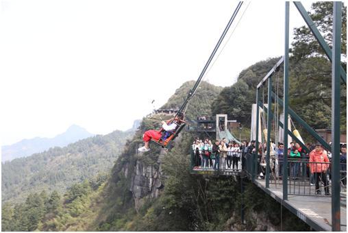 据说有8米的悬崖秋千,你知道吗?8米啊!就建在悬崖上,荡出去就是万丈深渊啊!