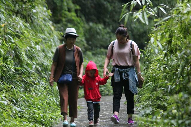 一家三口和妈妈去旅行
