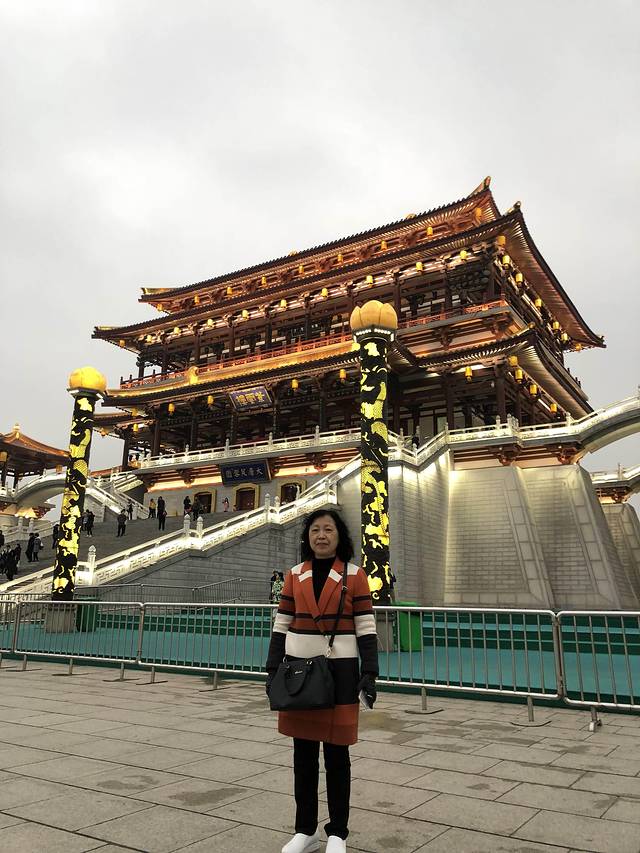 穿过“大慈恩寺公园”,到达北广场。这是晚上的大雁塔。