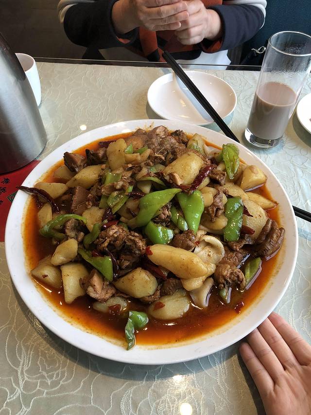 晚上5点出门。目前已经打卡了:凉皮、肉夹馍、泡馍,还差一个大盘鸡和葫芦鸡。大众点开,附近正好有家不错的大盘鸡。