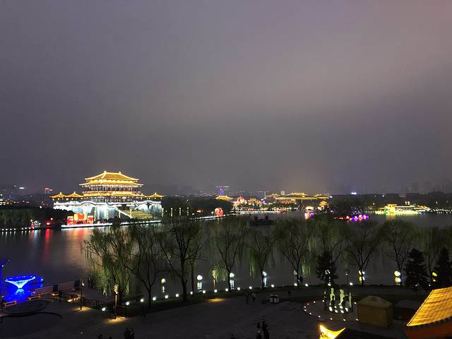 百度地图指引我从外面绕,我想能不能抄近路的时候,没想到居然进了“唐大慈恩寺遗址公园”!之前看过白天的图,没有什么特别的感想。晚上简直美哭了!