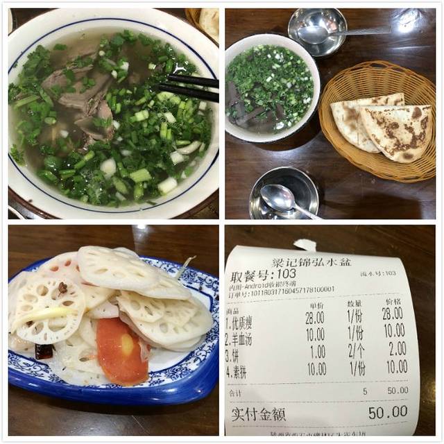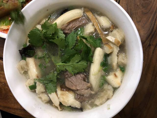 坐上优质羊肉(下面有粉丝),羊肉完全不膻!连老妈平时吃不来的也觉得好吃,馍很赞,凉拌藕片也超级好吃(两人不能吃辣,原本的素拼杂烩,只选了不辣的藕片)