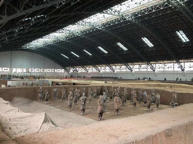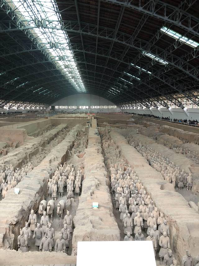 最后出来时,很Q的文创纪念品店。兵马俑目前只开放3个坑(还有1个展厅)。很多处勘探到了,由于保护技术不够完善,且需投入人力物力较多,暂未开挖。但讲还解说了预计5、6年内能再扩展N个坑,那时再来就是另一番景象了。