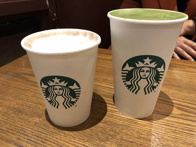 今天正好遇到会员日,赠送一杯。于是老妈终于喝到生平第一杯星巴克(抹茶拿铁)。左边的新品——巴旦木玛奇朵,喝了一口我就发信息给基友吐槽:要吐了。年轻人不能乱说话,因为半个小时后候我真的吐了。