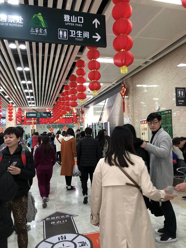 过了验票口,还要走个9、10层的高度才能到缆车大厅。在这里去个洗手间比较好,山上洗手间很少。