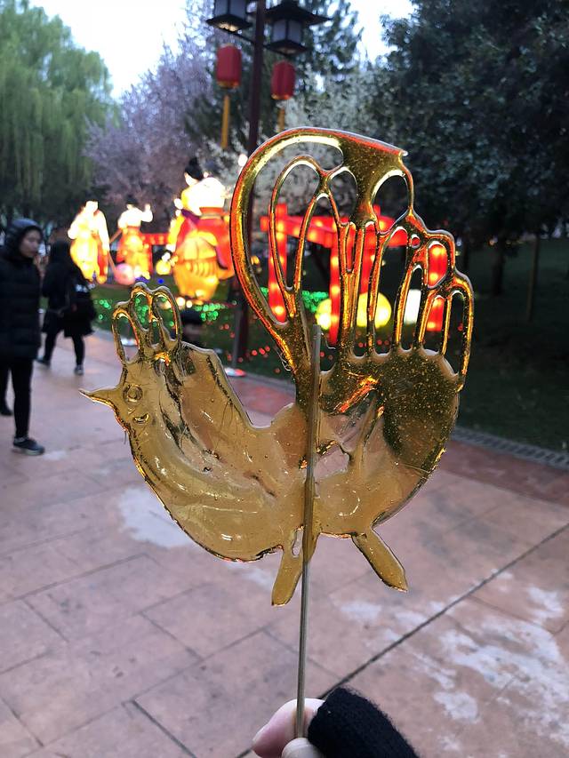 10块钱1个小的糖画。边逛边吃,后来都没有注意到在哪里丢了近半块。