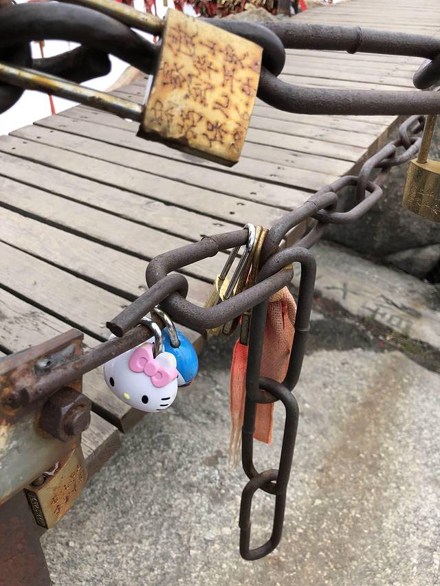 很多手扶锁链上被挂了祈愿锁。也有这种特别的~