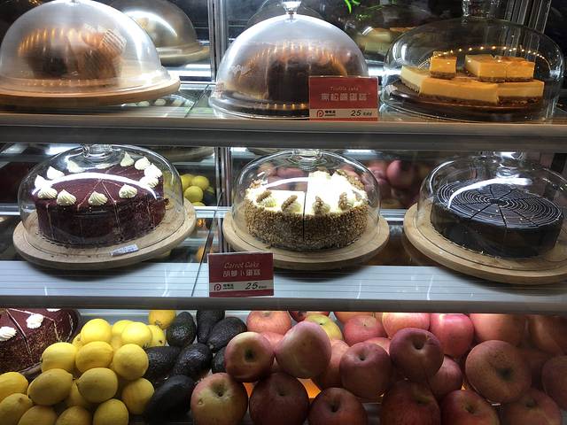 出来看到别家的糕点展示柜,好诱人。话说自从意大利蛋糕模具silikomart知名度上去后,几乎每家糕点都做成了那种一小件特殊形状的,然而我还是很喜欢这种切件的!