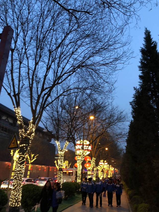 大雁塔区域,迎面而来的一组组学生。周边全部是这种浓烈的新春气息。老妈说:以后过年可以来一次,绝对比福州好玩多了。