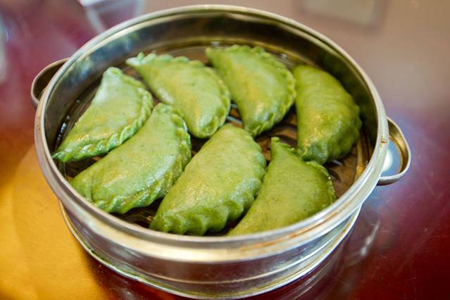 青团是江南地区一带的传统特色小吃,青色,用艾草的汁拌进糯米粉里,再包裹进豆沙馅儿或者莲蓉,不甜不腻,带有清淡却悠长的青草香气。