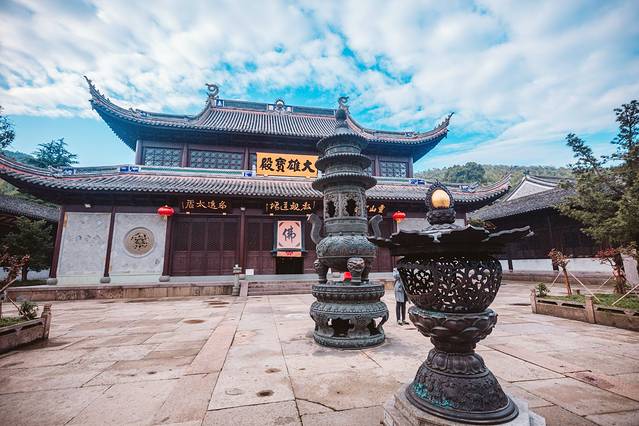 这里便是浙东第一古刹的五磊寺。千余年来,五磊寺屡经改名,几经毁建。明朝永乐年间,册定全国寺名,名五磊禅寺,从此名声大振,清宣统年间(1911年),天台宗谛闲法师莅寺主持讲席,改名“灵山讲寺”,成为宁波地区最早的天台宗道场。