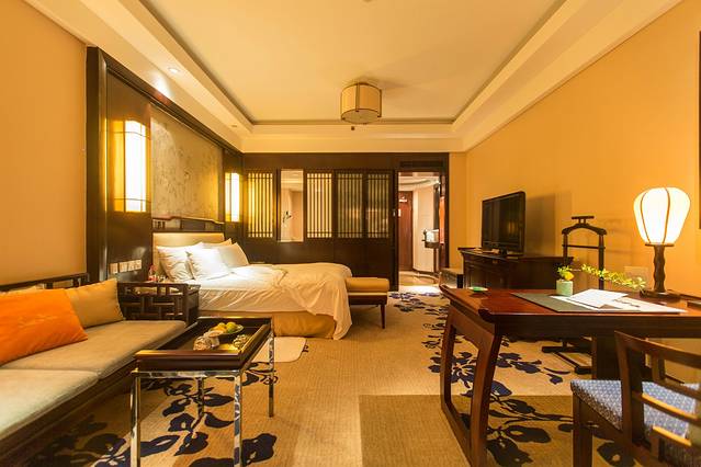 房间也是很传统的中式风格哦,简洁而宽敞,没有过多的装饰,仅仅是几盏台灯就构成了这个房间最温暖的元素,清香的木质味道伴着香甜的睡眠,再多的疲惫也立刻得到了放松。