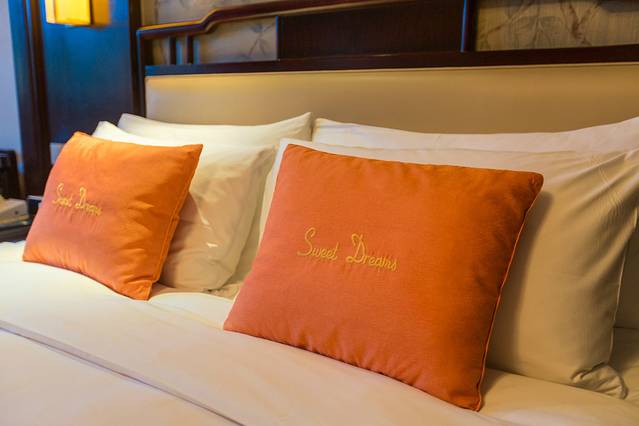 房间以中式装修为主,非常贴心的提供了好几种枕头的类型,为了适应不同人的睡眠需求,简直不能更让人有回家的感觉了。