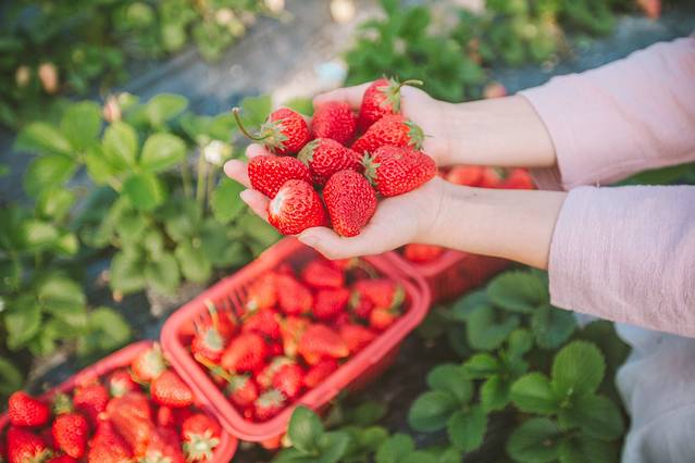 还没来得及好好拍照,小伙伴们已经迫不及待钻进了棚里,开始挑选个大饱满的草莓了!