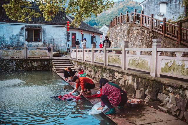 走到池塘边,处处是在石板上浣洗的人们,这里带给我们的感觉更多的是清闲,多了几分烟火的气息,让人觉得亲切!