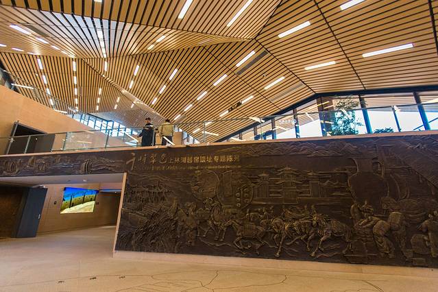 上林湖越窑博物馆整体参考了龙窑窑体的造型,依山而建,尊重自然;面砖颜色整体呈红棕色,模仿了瓷器在高温煅烧下发生窑变时的颜色。博物馆主要分展示区、研究中心及办公管理用房区两大功能区块。