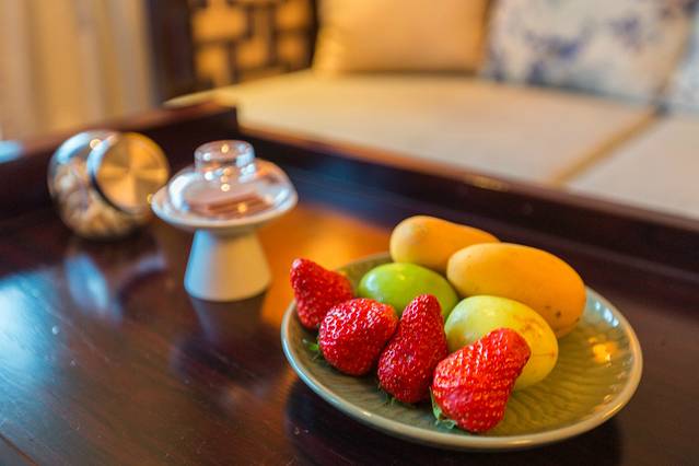 酒店还为我们提供了新鲜的果盘和即食小吃,尝了尝新鲜的水果,特别甜。