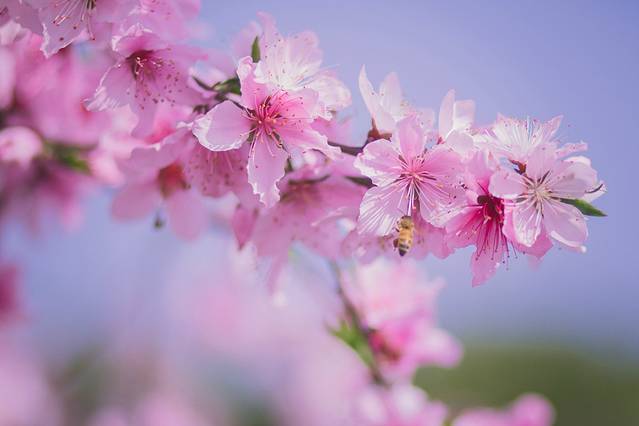 勤劳的蜜蜂也担当起采花大盗的角色,嗡嗡从这个枝头飞过那个枝头,一刻也停不下来。莫不是和我们一样,也不想辜负了这大好的时光?