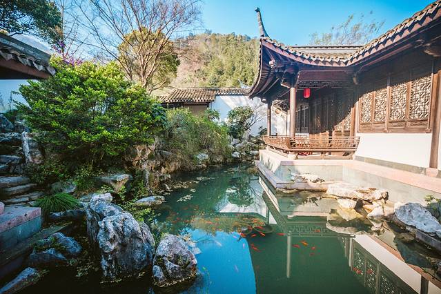 我们的院子一共有四间房,推开质朴的木门,入口处便是曲折迂回的长廊,旁边的亭台楼阁和假山,看起来特别的古典有韵味。每间房前都有一个小型温泉池子,夜晚在温泉里泡汤看星星,格外的浪漫。房间也是传统的中式风格,清晨起来,阳光洒在院子里的树梢上,外面是鸟语花香,这里仿佛喧嚣闹市里的一片世外桃源,时间在这里很慢!