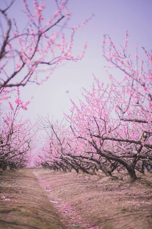 粉嫩嫩的桃花树延绵不绝,若是此刻能有穿着汉服的妹子,应该就特别应景了!