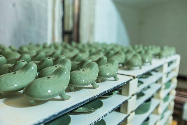 经过高温烧制出来的青瓷就是这个样子啦,颜色翠绿欲滴,低调又不失光彩。