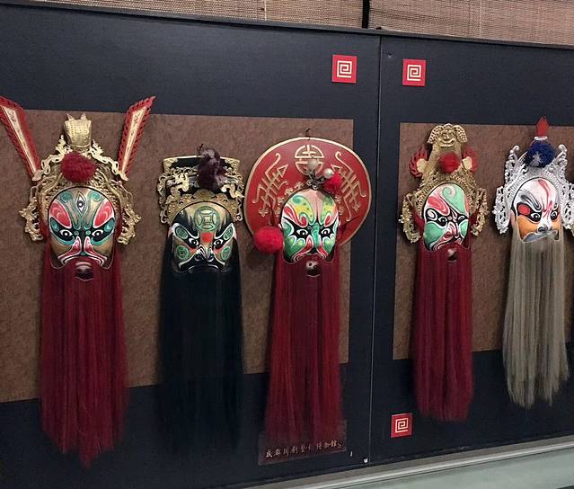 相传“变脸”是古代人类在面对凶猛野兽的时候,为了生存把自己脸部用不同的方式勾画出不同形态,以吓跑入侵的野兽。