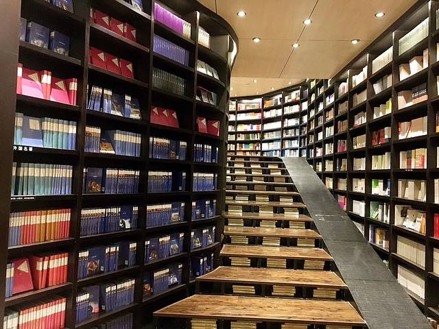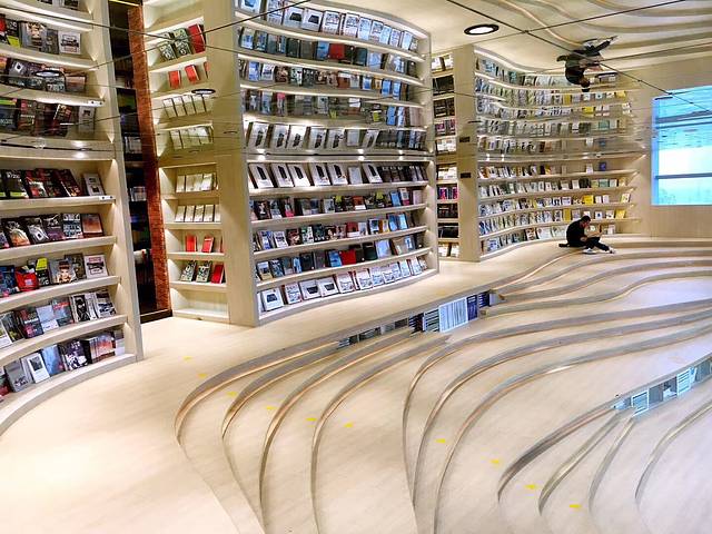 去掉了生硬的墙面隔断,采用了独特的铁艺网格,减轻了传统书店设计的厚重感,给你造梦空间般的体验。