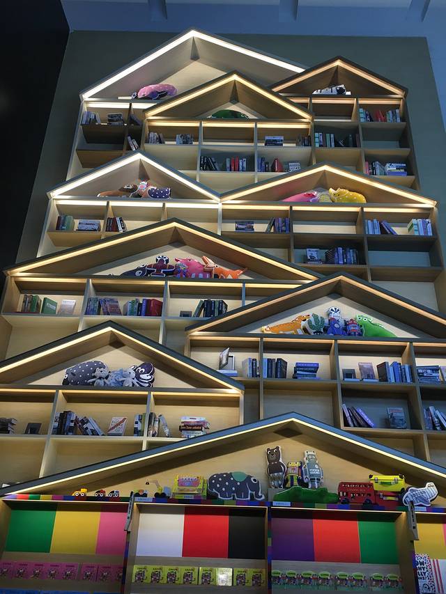 专门为孩子打造的“言宝乐园”,大概会把每一个孩子征服。高耸入天花板的玩具和童书足够孩子们在这个区域待一整天都不会腻。