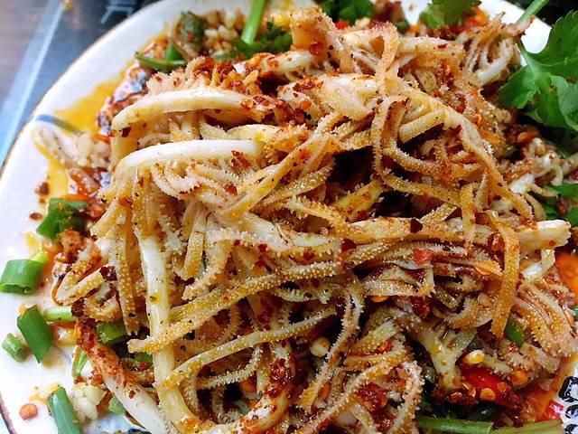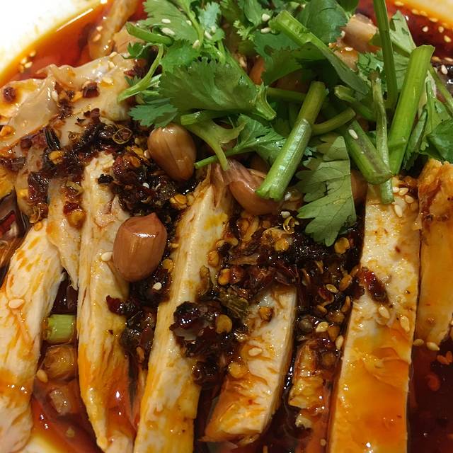 口水鸡是一道凉菜,佐料丰富,集麻辣鲜香嫩爽于一身。有“名驰巴蜀三千里,味压江南十二州”的美称。