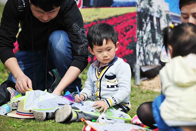主办方给每组家庭配送了一个可以涂鸦的风筝,花仙子、哆啦A梦、白雪公主、贝尔公主、大鲸鱼、花蝴蝶。。。我们用自己带的水彩笔,主办方送的颜料和画笔,给每一个风筝涂上心仪的颜色,孩子们创造出来的搭配,可谓是多姿多彩。