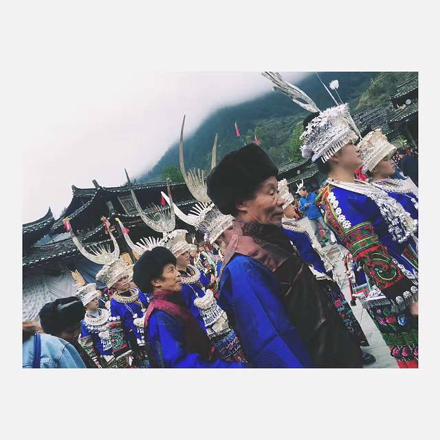 碰巧遇到苗寨的大游行,男女老少穿着盛装在广场绕圈跳舞,特别壮观