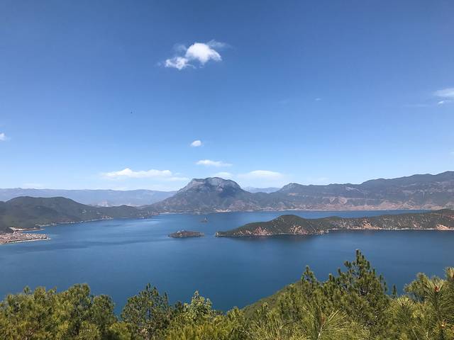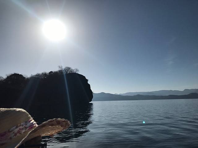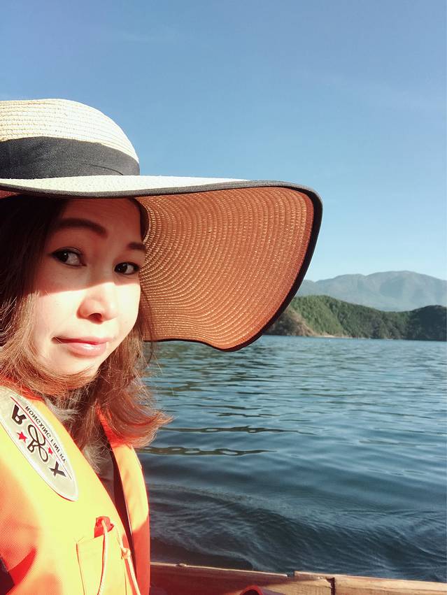 到達瀘沽湖好曬☀️但這就是我最喜歡的風景 頭上藍天白雲 還有瀘沽湖七色的湖水。