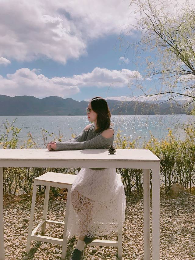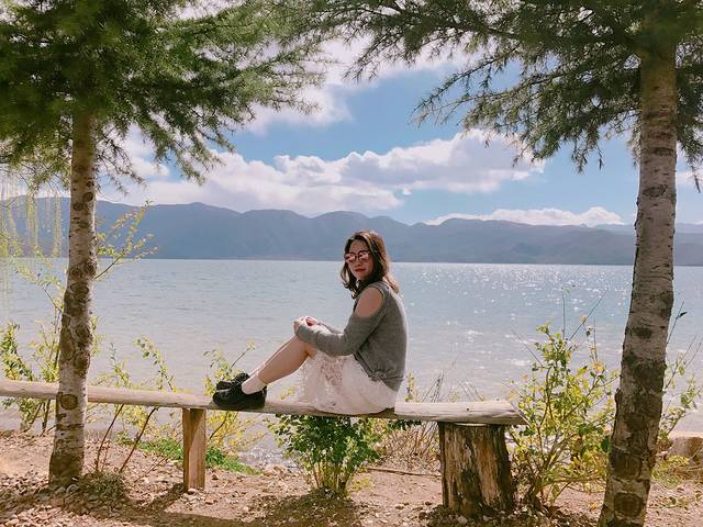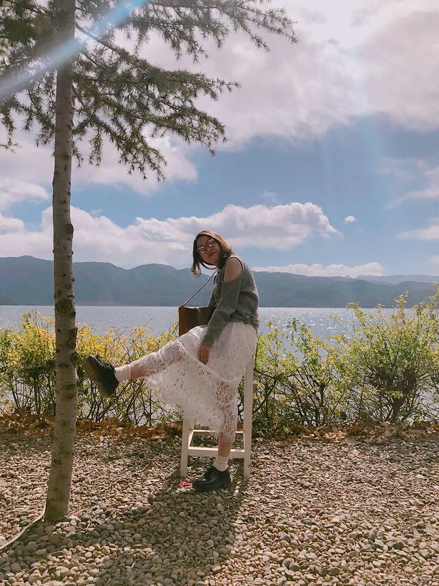 一到達瀘沽湖灣畔湖邊 景色真的好美,迫不急待的拍照留念一切的美好😜