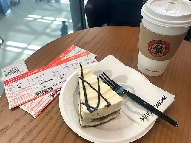 在機場候機 某人抽煙去了,一個人在星巴喝杯咖啡