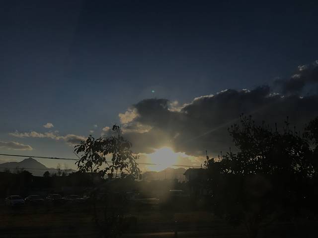 19:35到达丽江三义機場 坐機場巴士前往住宿的地方 ,快20:00這邊的太陽才剛下山 ,看到山邊的夕陽 美美的