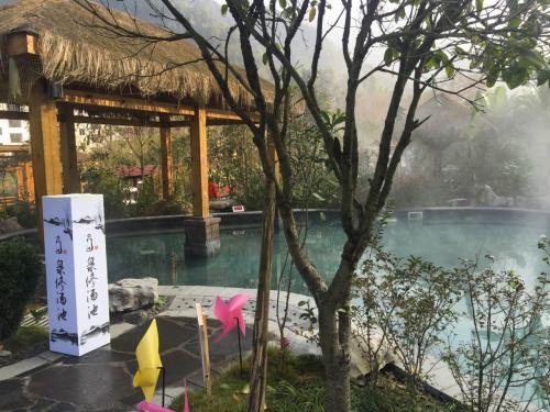 当天的天气是阴天,其实还蛮适合泡温泉的。金佛山的温泉主打的是真温泉,我寻思了下假温泉是什么呢,我想应该是那种锅炉的热水吧,不含任何矿物质,人就相当于去了个澡堂似的……哈哈哈哈