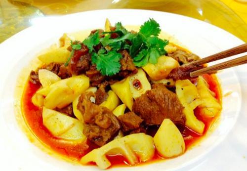 晚上泡完温泉去了镇上吃了金佛山著名的大碗菜,还有当地特色方竹笋。真的特别好吃,我妈妈赞不绝口。