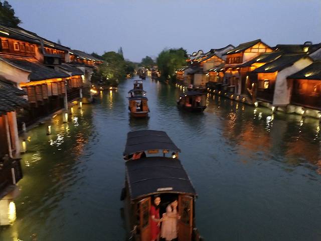 第二天8点半在九堡客运站乘车直接去了乌镇(车费31块,70分钟到),建议提前一天买好票,避免等车的时间。乌镇客运站不大,有公交车过去,下车后给入住的乌镇水乡小住客栈打电话,本来想问下怎么过去方便,谁知道耿直的老板让我等着,他过来接。乌镇附近很多客栈,哪怕没有提前订过来也有住的地方,外面价格都不贵,100-200的很多,到了客栈后,由于前面那位房客还没退房,我们放好行李,换上旗袍就直接去了东栅,老板娘建议我先去东栅玩两个小时,下午回来休息下,四点再去西栅,可以直接玩到晚上看完夜景再回来。我带着还在按照老板跟我说的路线到了景区售票处(走路15分钟,打滴滴9块),售票处人很多,自助机具都排满了人,在工作人员的指导下我通过支付宝扫描二维码买了东西栅的联票,200块1张,然后在那搭乘了去东栅的免费班车,刷身份证入园。一进景区就可以看到码头上很多等船游客,30元一张船票,孩子半价,凑够8个人才开船,很多人是包船,260元,不包船的话工作人员一定要凑够8个人才开船,没有遇到合适的拼船我们只好往景区右边慢慢转,为此女儿还闹了下小脾气,5岁的孩子不讲道理,一心只想着要坐船,而我也要算下成本,所以慢慢哄着,说我们可以出来的时候再坐船。走了大概15分钟到了另一个码头,工作人员的说话又不一样了,船票照样30元一张,都是拼船,人不够到时间了也开船,所以我们顺利的坐船进了景区最里面。第一次坐乌篷船,孩子很兴奋,坐在船上看着两岸的游客、小桥、流水、人家,真的是不一样的意境,在别人眼里我们也成了风景。东栅不大,大小景点也有很多,没有导游我们只好瞎逛,去了茅盾故居和其他记不住的景点,看着桥就过,合适的地方拍照,天气很好,像是夏天,也有游客脱了鞋在那泡脚。出来的路上碰到了拳船表演,演员应该有60多了吧,精神奕奕,很有气势。出来的时候大概2点,走累了,打了个车回客栈休息,客栈环境很好,又是一楼,很方便,去哪儿上订的才124元,比起我们四川景区的客栈便宜太多了,还是圆床,全是粉色系列,适合情侣。三点半的时候我们出发去了西栅,这次照样是坐船进景区,进门也有免费的船送到对岸的码头,5分钟,很多人排队,估计要等半个小时,西栅的船票是60一个人,比东栅贵一半,坐25分钟,等船的空隙里遇到一对抱着孩子的夫妻在凉亭了拍照,厚着脸皮找人帮忙拍了合影,一个人带着孩子出门就是拍照不方便,合影少,我自己的更少,都顾着给孩子拍了。游船行驶过程中太阳也开始下山了,有幸拍到了夕阳,好美。西栅已经商业化了,由中青旅开发,连摇船的师傅也是中青旅的员工,他说里面住宿很贵,没有便宜的,都是集团统一了价格,唯一比住在外面好的就是买一天的票可以玩两天。下船后直接到了酒吧一条街,后面的表演已经开始了,我们在那一直看完才离开。下午的西栅人还没上午东栅多,没有出现一拍照全是人头的现象,景区里吃的也不贵,价格都能接受,一杯奶茶15块,比起西岭雪山上38块一杯的简直是不要太便宜了,糕点几块一个,来自四川的我也只能是尝个鲜,不敢买多了。在一家饭店看了下菜谱,基本上都是20-40元一份菜,不算贵,本来计划给孩子点个炖鸡锅的,可是她说不饿,想去其他地方,于是我们小憩了下继续往前走。晚上的西栅很热闹,人也多起来了,估计都是冲着西栅的夜景来的,晚上拍照的效果跟白天完全不一样,说不出的美,我没看过黄磊和刘若英的似水年华,但在这里完全可以感受到那种宁静的气氛,据说黄磊在这有套房子,每年四五月份都会带着家人过来小住,那个时候来这很容易遇到他。西栅沿河分为了景点和商业区,商业区人偏多,卖的东西和其他古镇相比大同小异,也有上海的特产,比城隍庙的还便宜,也有茶楼,可以随便坐下休息,不会有人上来跟你说一茶一座,这点真的比四川好太多了,身为四川人真觉得四川景区就一个字:宰! 这次的乌镇行真的很值,整个过程偏悠闲,不赶,累了就找个地方休息,喝点水吃点东西,孩子也不闹腾,估计是才第二天,精神尚好。从早上东栅到晚上游西栅,我们花了5个小时,估计休息的时间占了两个小时,如果不是每个景点非要去一趟,其实一天游玩完全足够,不累,这个就是不跟团的好处,想怎么安排就怎么安排,不好的就是自己瞎逛。