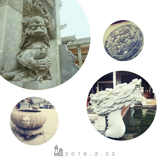 走过古戏台,穿过风雨桥和过街桥,面前出现的是两座高耸入云的塔,看到塔总会有一种敬畏,也想上去走走,楼道很黑,最终还是因为害怕而打消了这个念头,靠近岸边,有三座三门的石牌坊,均是精雕细啄的模样,我最爱上面的貔貅和麒麟,一脸俏皮的模样,像一个年幼的孩童。
